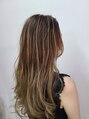 下から上に向かってハイライトを入れることで立体感をだしています。ブリーチをしてからミルキーベージュをいれています!