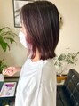 切りっぱなしのボブベースにインナーカラーでピンクにアクセントを☆