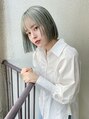 ぱっつんボブ/ミントカラー/ブリーチカラー