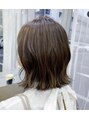 切りっぱなしのミディアムスタイルは、外ハネにすると可愛さ倍増◎