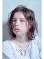 ミントグリーンホワイティアッシュ×ウルフボブ×くせ毛ショート