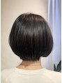 襟足ギリギリの前下がりのショートボブにカット!後ろにしっかりレイヤーを入れてひし形シルエットにしたのがポイントです!360度どこからみてもシルエットが綺麗に見えるように意識しました!