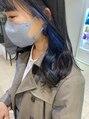ブリーチ2回~できる濃いめのブルーイヤリングカラー♪色持ちもよく、艶感もあって可愛い!