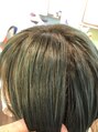 ハイライトにグリーンをのせました。オリーブグリーンの少し濃いめのお色は色落ちも楽しめてオススメです。