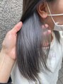 内側をブリーチで脱色した髪に、ブルーグレーカラーを入れて、耳にかけたとき、結んだとき、巻いたときに、ちらっと内側から見えるお洒落なインナーカラーです!是非、少し色入れてヘアカラーを楽しみたい方は、やってみてくださいね!(^^)