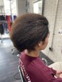 ミディアムくらいの長さをアフロスタイルに仕上げました。