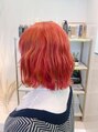 アプリコットピンクケアブリーチをしてオレンジベースのピンクをのせています!切りっぱなしボブ!