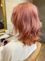 1ブリーチ後にサーモンピンク系のケアカラーでしっかりケアを行いながら、存在感ある色合いの中にも柔らかさもある印象のカラーデザインに。前髪にはあえて無造作な動きが出るようケアパーマで個性溢れるヘアデザインに。イメチェンしたい方はぜひっ♪