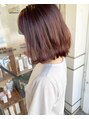 ベースは重めのボブですが顔回り~表面にしっかりとレイヤーを入れて軽さと動きを。コテで巻いた時により動きが出ます。カラーは9トーンのフェミニティピンク、ちょっと濃いめ。
