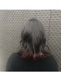 襟足にインナーカラーをお施術したお客様のバックショットです。ピンクレッドで春カラー ♪全体は黒髪のまま、襟足をカラー剤で最大まで明るくし、可愛いお色を乗せました。会社や学校でのカラー制限があったり、お肌が弱くてブリーチしたくない方でも!