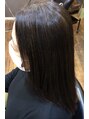 ストレートパーマ縮毛矯正、フローディアスタンダードトリートメント、毛先3センチカットです。毎月カラーされてる方ですがストレート剤がいい薬剤の為サラサラツヤツヤに仕上がりました。トリートメントしたようなルシケアアクアストレートです。