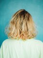 根元を暗めにカラーして毛先を2回ほどブリーチしておしゃれにブロンド系に♪ゴールド系の色をいれて、金髪じゃないブロンドカラーに仕上げています。カットは動きが出るようにレイヤーをいれて、全体的に外はねに巻いてあります!