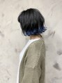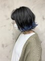 裾カラー。くすみブルーの裾カラーです♪くすませる事でイメージが偏り過ぎず柔らかな印象になります!柔らかい色味ほどブリーチベースに明るさが必要になります!