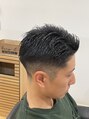 下1.1ミリのフェードショートスタイル!フロントの立ち上げ、サイドとのつながりバックの寝かせつけを意識したフェードスタイルです!分けやすさ流しやすさを意識してあるので硬めのスタイリング剤をつければセットは簡単です。