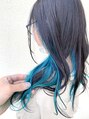 インナーカラーに鮮やかなターコイズブルーをオン♪被さる上のカラーもブルーベースのカラーで、巻いても良し!アレンジしても良し!のおしゃれカラーです☆