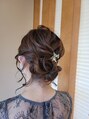 結婚式、二次会等、華やかアレンジまとめ髪レースのワンピースがとてもお似合いで、思わずうっとり見惚れてしまいました。