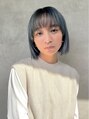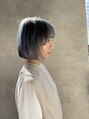 オシャレ系くすみブルーの切りっぱなしボブです。サイドバングとシースルーバングで甘さも取り入れつつのクールスタイルです。ベースはペールイエローくらいまで上げると綺麗なブルーが発色します。