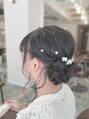 王道フェミニンなパーティーアップ。髪飾りはお花バレッタ+パール小物です☆