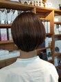 まるッと可愛いボブスタイルです。襟足は首にそってキレイに見える様に。前髪はワイドバングにしましたが、似合わせバングで前から見て可愛く見えます。カラーは艶のあるウィンターシーズンにオススメのチョコレートカラーです。