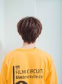 長めのバングをセンターパートで分けた大人っぽくクールなイメージのあるハンサムショートスタイルになります。。