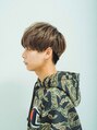 マッシュベースのバング長めのスタイルに、襟足は刈上げのメリハリスタイル!!バングは長めでも、トップにレイヤーを入れて動きのあるスタイルに!カラーはベージュ系の明るめのカラーリングに、襟足の刈上げているところはブラックにメリハリを出します。