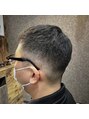 周りはうすく刈り上げ、トップと前髪を短くしたクロップスタイルです!!グリースなどツヤのあるワックスをつけて前におさめるのでラクにセットが決まります!くせ毛の人にもおすすめなスタイルです!(京成曳舟店 鶴岡 15112021)