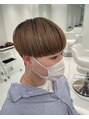 個性派必見。刈り上げマッシュショート。サイドとバックは刈り上げにトップ周辺の髪の毛をマッシュにカットし自然な繋がりに。顔まわりはラウンドで丸みの可愛さを表現しました。