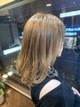 カットは動きと軽さが出るように段を入れて自然に柔らかく見えるようにしてありますカラーは表面を赤みを抑えてくれる明るめのベージュ系で、インナーは一回ブリーチをして主張しすぎないようなアッシュにデザインしています