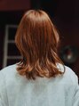 クリーミーなオレンジカラーでオシャレなカラーに☆ファッションのアクセントにもなるカラーで春夏のオシャレポイントに☆顔まわりはシースルーバングにサイドは耳にかけ肌感を出して爽やかに!小顔効果にも抜群です☆
