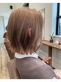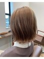 ケアブリーチよりさらにダメージを抑えたLiB hairオリジナルのブリーチで全頭をブリーチ。さらにカラーを重ねて透明感抜群のハイトーンカラーに仕上げました!切りっぱなしボブとの相性も♪