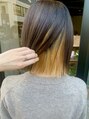 - ケアブリーチ、カラー、カット 切りっぱなしボブ インナーカラー インナーイエロー 担当城倉