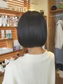 首が見える位置でラインを出すボブにする事で、首が細く綺麗に見えます。カットラインをほんの少し前下がりにしてキレイなラインを出しました。ハンドブローだけでもまとまるボブスタイルです。
