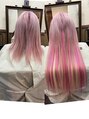インナーにホワイトエクステもいれ桜色ピンクとメッシュにビビットピンクメッシュエクステをつけたお客様☆☆派手めですが同系色の色なので統一感がでてます^ ^☆原色カラーをしたい方は2~3前より色のお問合せしていただく方がいいと思います^ ^