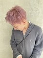 ピンクだけど、しっかりショートに切り込むことで、甘すぎないバランスに仕上がります。色落ちはホワイトブロンドです。
