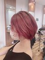 ピンクバイオレット艶髪ボブ大人可愛い暖色カラー20代30代