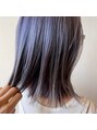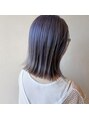 透け感のあるラベンダーグレーカラーと、ぱつんと切りっぱなしボブ◎ケアブリーチ2回以上でしっかりと髪の色素を抜いて、ラベンダーとグレージュをミックスしてオンカラー!淡い透明感が毛先のぱつっと感と合います♪