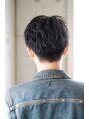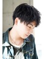 ツーブロックの前下がりマッシュベース。スパイラルパーマとツイストスパイラルパーマをランダムにかけて無造作な動きをつけます。