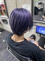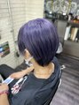 もともと髪色の明るい方でしたので、根元のみブリーチしたのちに、紫に仕上げました!カットも伸ばし中なので、メンテナンスとして整えさせていただきました!