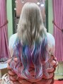 毛先のユニコーンカラー!!ケアブリーチ3回、表面はホワイトシルバーにグラデーションでいれてます♪