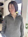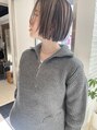 襟足が隠れるギリギリまで切り込んだミニボブ。前髪は長めのぷつっとでデザインポイントに◎