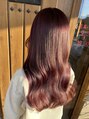 全体ブリーチ1回☆色落ちが淡いパステル系ピンクになるように、濃い目にピンクラベンダーでカラーしています*。光に透かした時の透明感とツヤ感がとってもお洒落で可愛いです◎