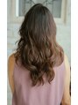 全体をリバース巻きにすることで出る艶感が大人っぽいスタイルです。輪郭を強調する顔周りの髪が、明るい爽やかな印象を持たせます。重く見えすぎないように、毛先の方は少し明るめのカラーでグラデーションにしました。