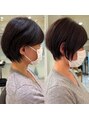 フェミニンな印象のシフォンショート。幼い、可愛い印象になりがちなショートですが3つのポイントを意識して大人な印象のショートをつくっています。・後頭部の丸み位置 ・前髪~サイドの髪の流れ ・襟足のおさまり具合