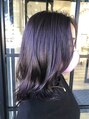 扱いやすいミディアムヘアにレイヤーを入れて軽くアイロンするだけで動きが出るようにカラーはオフィスOKのパープルグレージュ光に当たるとほのかに紫に、室内だと黄味がなく艶々の髪に