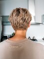 前髪は目に少しかかるくらいの長さでカット。横はかなりスッキリ目ですが後ろはあえて刈り上げないことでナチュラルな髪型に。レイヤーもたくさん入っているのでセットの仕方で束感や動きをたくさん出せます。カラーはハイトーンでさらにおしゃれに。