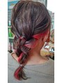 REDとORANGEのインナーカラーです。編みおろしアレンジが映えますね(^-^)