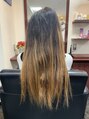 ブリーチ部分を10cmほど切りカラーは明るめのブルーブラックに仕上げました。