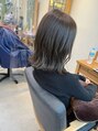 肩につく長さの切りっぱなしボブ。ぷつっとしたラインがオシャレ◎ カラーはオレンジみを抑えたオリーブグレージュ。冬らしく少しトーンダウンさせていただきました!