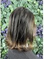 全体のベースはベージュ系のヘアマニキュアをしています。そこに弱めのケアブリーチで白髪ぼかしのハイライトを入れてます。今回はさらに少し変化がほしいとのことで、毛先を弱めのケアブリーチで明るくし、裾カラーにして遊びを加えております♪