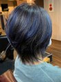 くすみブルー×ハイライトミニウルフ★五反田美容院